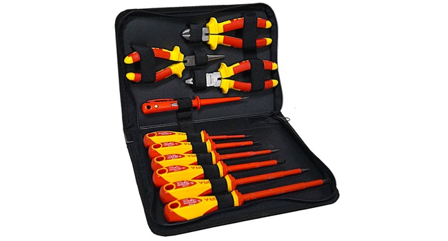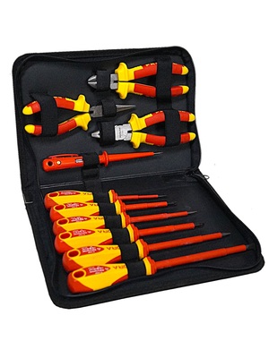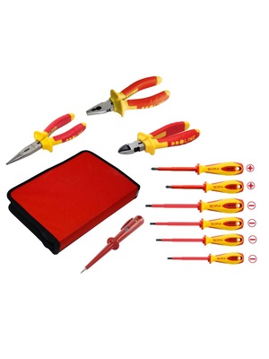 Laadukas 10-osainen VDE työkalusarja säilytyspussissa. Sarjassa VDE ruuvitaltat 6kpl, VDE pihdit 3kpl sekä tunnistinmeisseli. VDE, GS 1000V, EN 60900 Katso alta tarkemmat tiedot.