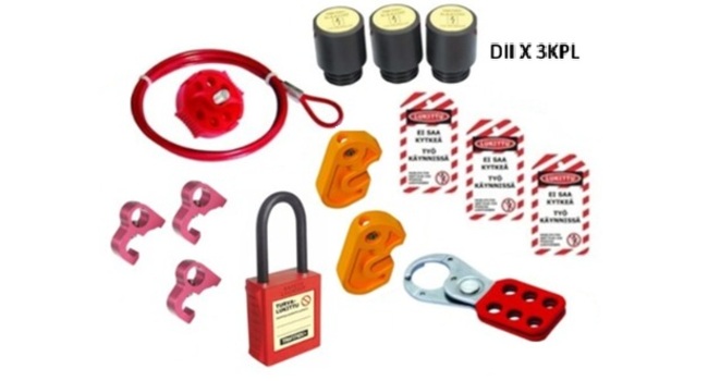 Kattava 14-osainen lukitus-setti asentajalle säilytyspussissa. Näillä lisäät työnaikaista turvallisuuta ja estät tahattoman jännitteen kytkennän erilaisissa työkohteissa. Katso alta tarkempi sisältö.