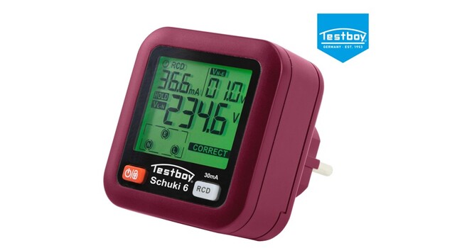 Testavit Schuki 6 pistorasiatesteri pistorasian nopeaan testaamiseen. Mukana myös vikavirtasuojakytkimen laukaisupainike laukaisuajan mittaamiseen. Katso alta tarkemmat tiedot.