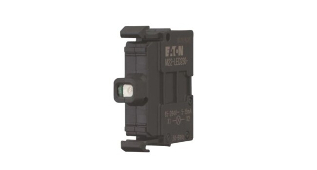 Merkkivalo EATON M22-LED230-W. Väri: Kirkas (valkoinen). Etulevyasennus. Ruuviliittimet. Led 230VAC.