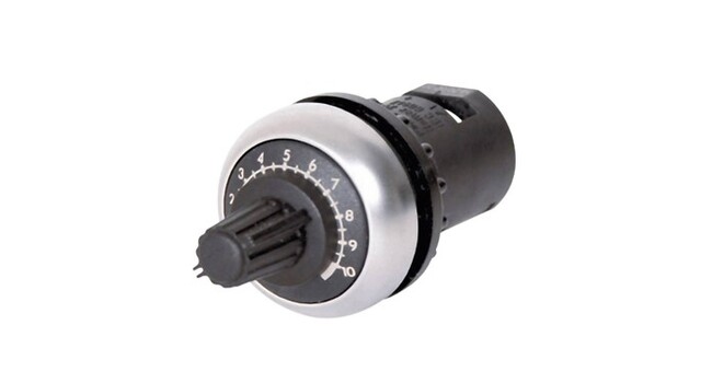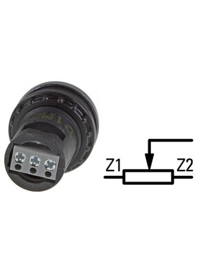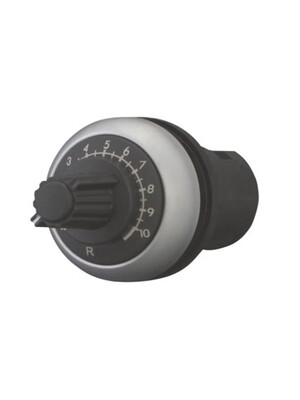 Potentiometri EATON (0,5W), resistanssi 1000Ω (1kΩ). Asennus 22mm reikään. Ruuviliitännät, kotelointi IP66. Yksikierrospotentiometri.