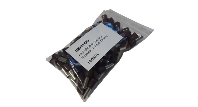 Eristetyt pääteholkit 10mm², pituus 10mm. 100kpl pussi. Väri: Ruskea