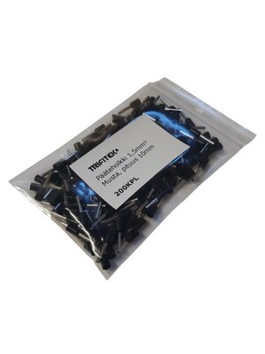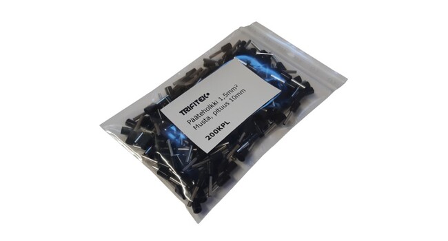 Eristetyt pääteholkit 1,5mm², pituus 10mm. 200kpl pussi. Väri: Musta