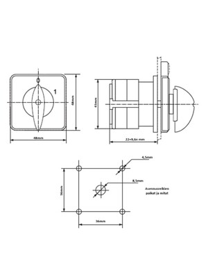 3-napainen nokkakytkin 0-I. Nokkakytkimessä 3kpl sulkeutuvaa kosketinta (NO). Kansiasennukseen. Un 230/400VAC, max 20A.