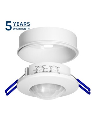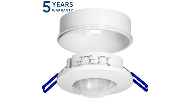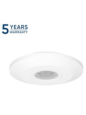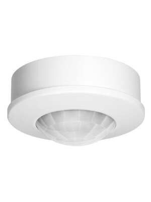Liiketunnistin valaistuksen ohjaamiseen, asennus kattoon pintaan tai uppoon. Valvonta-alue 360°. Säätö valaistustasolle ja päälläoloajalle. Katso alta tarkemmat tiedot.