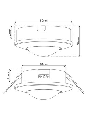 - Mitat: halkaisija 80mm, korkeus 39mm (asennusaukon koko 63mm)