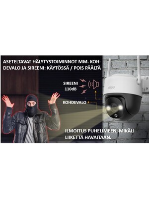 - Sireenitoiminto ja kohdevalo aseteltavissa päälle / pois päältä hälytyksestä (kun liikettä havaitaan)