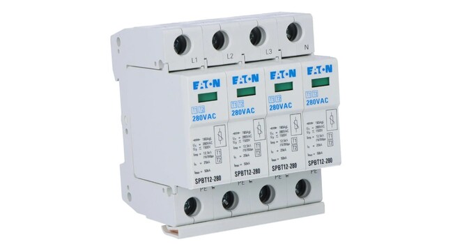 EATON ylijännitesuoja SPBT12-280/4 sähkölaitteiden suojaamiseen esimerkiksi salamaniskuilta, luokka I ja II (B+C). Soveltuu käytettäväksi TN ja TN-S järjestelmissä. Katso alta tarkemmat tiedot