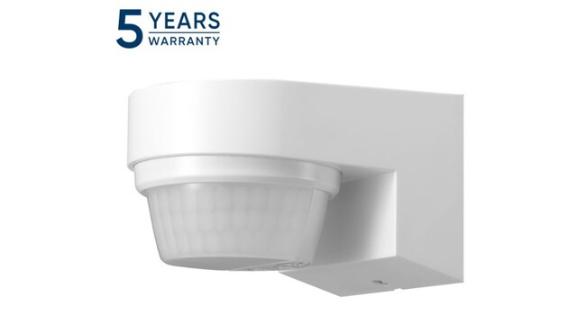 Liiketunnistin valaistuksen ohjaamiseen, valvonta-alue 240°. Säätö valaistustasolle, päälläoloajalle ja herkkyydelle. Katso alta tarkemmat tiedot.