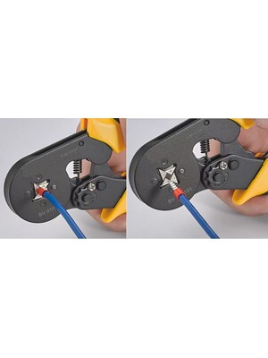 Erittäin laadukkaat pääteholkkipihdit eristetyille ja eristämättömille pääteholkeille. Soveltuu pääteholkeille 0,25 - 10mm². Erittäin helppo- ja nopeakäyttöiset puristuspihdit. Neliömäinen puristus. Katso alta tarkemmat tiedot.