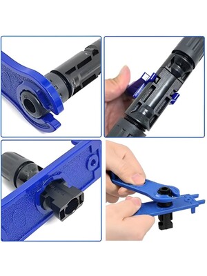 Kiristystyökalu MC4 aurinkopaneeliliittimille. Pituus 115mm, sininen. Työkalujen avulla helppo ja luotettava MC4 liittimen kiristys. Pakkaus sisältää 2kpl.
