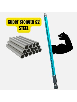 Laadukas 10 osainen ruuvauskärkisarja, pituus 100mm. Sarjassa PH kärjet: PH1 2kpl, PH2 6kpl ja PH3 2kpl. Magneettiset kärjet, hyvä pito, 1/4" vääntiöllä. Materiaali: työkaluteräs S2.