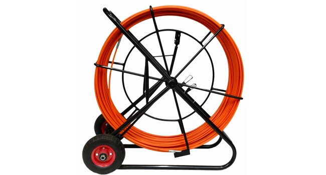 Lasikuituvetojousi 120m metallitelineessä. Kaapelien ym. vetämiseen putkiin ja kanaviin. Katso alta tarkemmat tiedot.